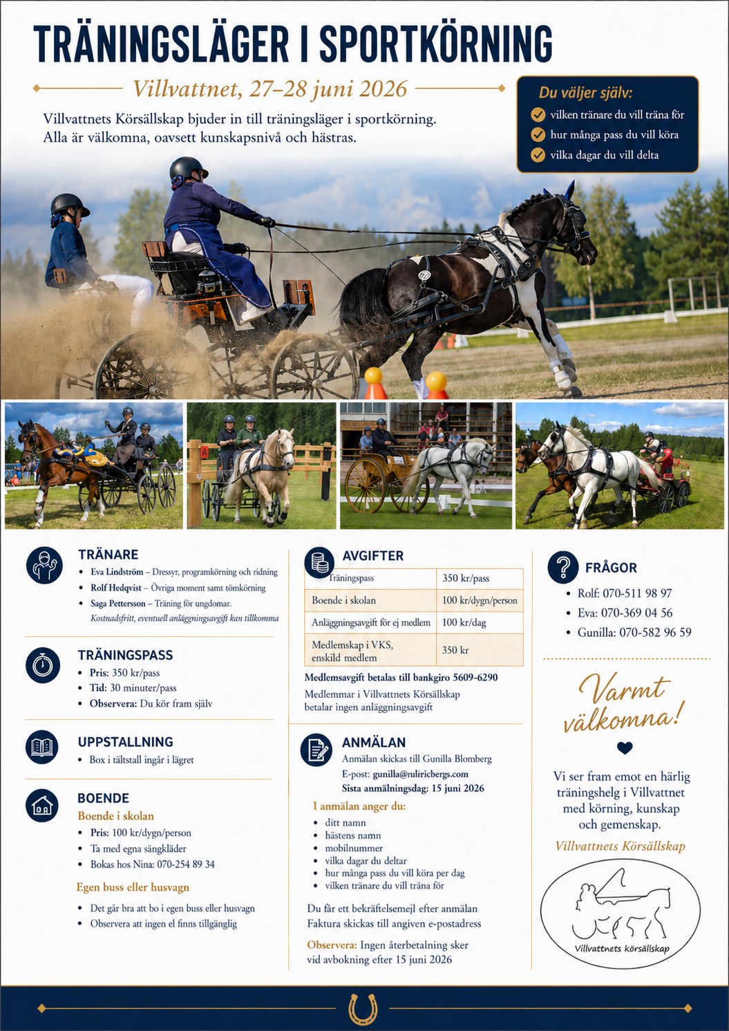 Vi ser fram emot en härlig träningshelg i Villvattnet med körning, kunskap och gemenskap.